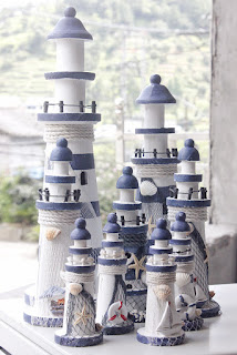 Faróis. Grandes, médios, pequenos. Com detalhes ou mais simples. Uma só cor ou várias. Só tenho um, com riscas vermelhas e brancas, que comprei em Baiona, mas se pudesse tinha uma coleção infinita!